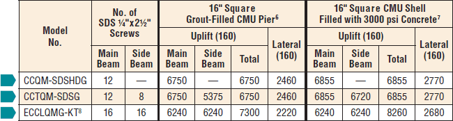 The ECCLQM embedded column cap is designed for use in raised pier foundations and applications where heavy beams rest on concrete or concrete block columns. The heavy-gauge beam seat and unique Simpson Strong-Tie® SSTB® anchor bolts provide the high uplift and lateral resistance needed to help resist high-wind events. The ECCLQM-KT is intended for use at the building corners.