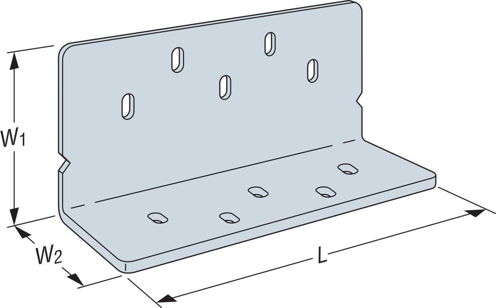The HSLQ heavy shear transfer angle is designed to transfer lateral loads from wood solid sawn joists or blocking into a wood solid sawn element such as a moment frame nailer. The angle offers versatility by allowing up to a 2" gap between the structural members and easy installation with Strong-Drive® SDS Heavy-Duty Connector screws that are included with the HSLQ. The HSLQ is manufactured with a gap indication notch to make proper installation easy.